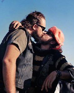 Yet as the journalist Hunter S. Thompson documented in his 1966 book Hells Angels: A Strange and Terrible Saga, gang members also had sexual encounters with one another. One of their favorite “stunts” was to deeply French kiss one another – with tongues extended out of their mouths in a type of tongue-licking kiss often reserved for girl-on-girl porn. Members of the Hells Angels explained that the kissing was a defiant stunt that produced among onlookers the desired degree of shock. To them, it was also an expression of “brotherhood.”